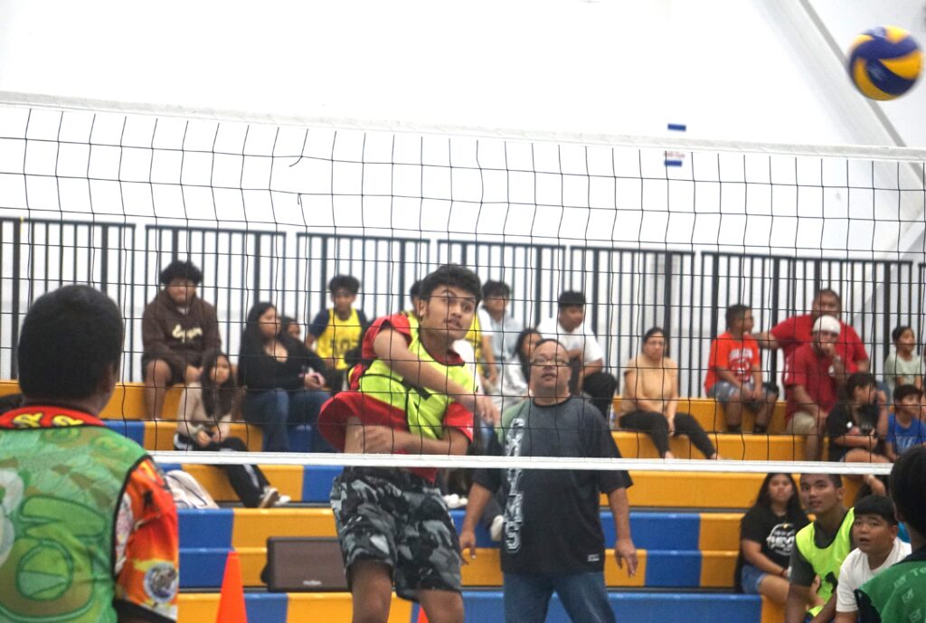 A Chacha player returns the possession during a boys middle school division game of the NMIVA-PSS Interscholastic Volleyball League SY23-24 at the Marianas High School gym on Thursday.