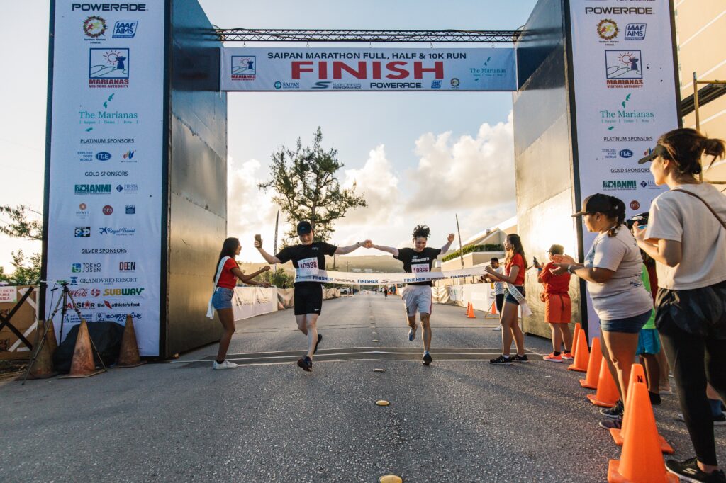 Runners reach the finish line of a previous Saipan Marathon. This year’s event will be held on March 9, 2024 with Platinum Sponsor Coca-Cola, Foremost, and Subway.