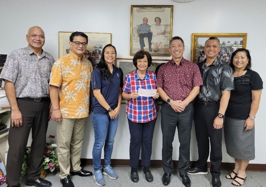First Hawaiian Bank, which donated $5,000, is a Trustee Sponsor (Silver) of the Joeten Memorial Golf Classic. From left, Vicente Agulto, vice president & Gualo Rai branch manager, First Hawaiian Bank; Edward Untalan, executive vice president & retail banking region manager, First Hawaiian Bank; Somia Quan, 2024 JMGC Committee; Annie T. Sablan, board member, Joeten Enterprises Inc.; Neill Char, vice chairman, retail banking group, First Hawaiian Bank; Dean Duque, executive vice president, branch banking division manager, First Hawaiian Bank; and Vickie Izuka, vice president & Oleai branch manager, First Hawaiian Bank.