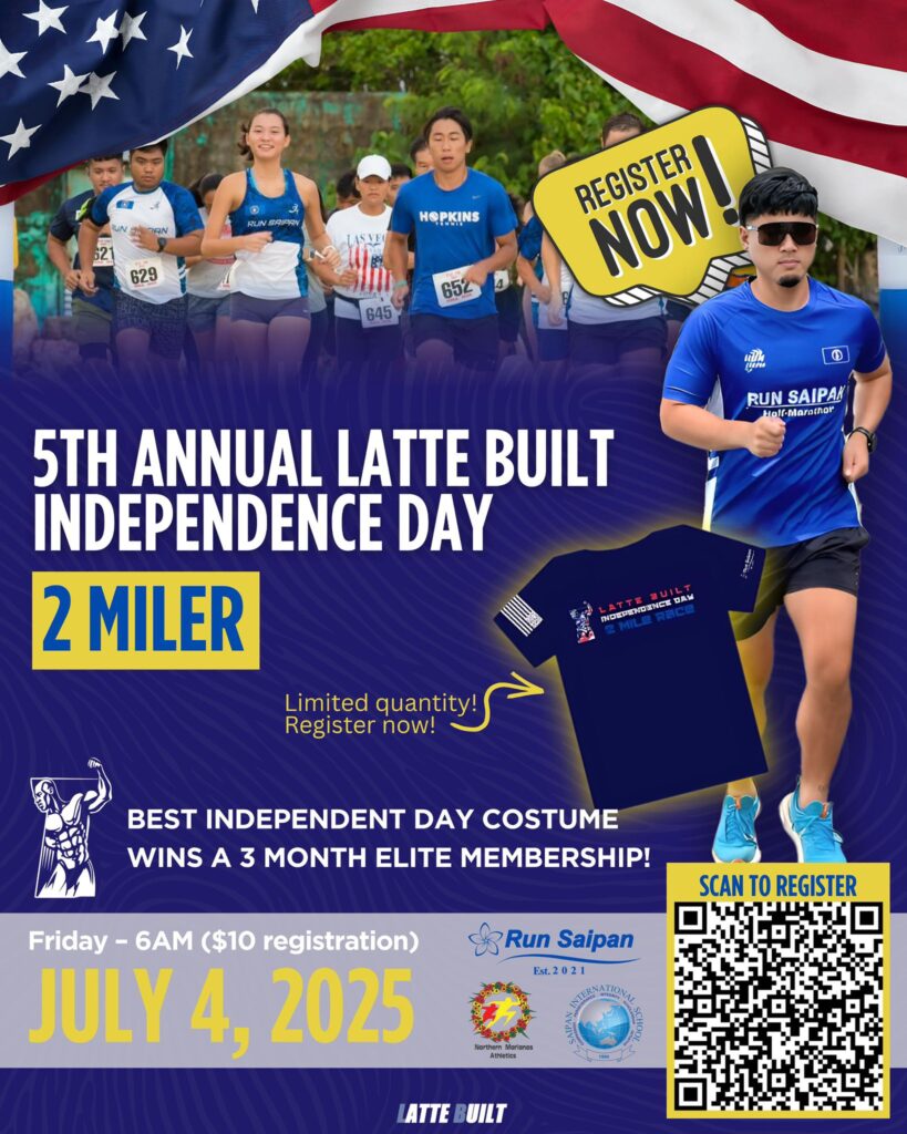 THE 4th Annual July 4th Independence Day 2-Mile Race 2025, sponsored by Latte Built in partnership with Run Saipan, will be held this Friday, starting and finishing in front of the Latte Built Gym in Calan Kanoa.