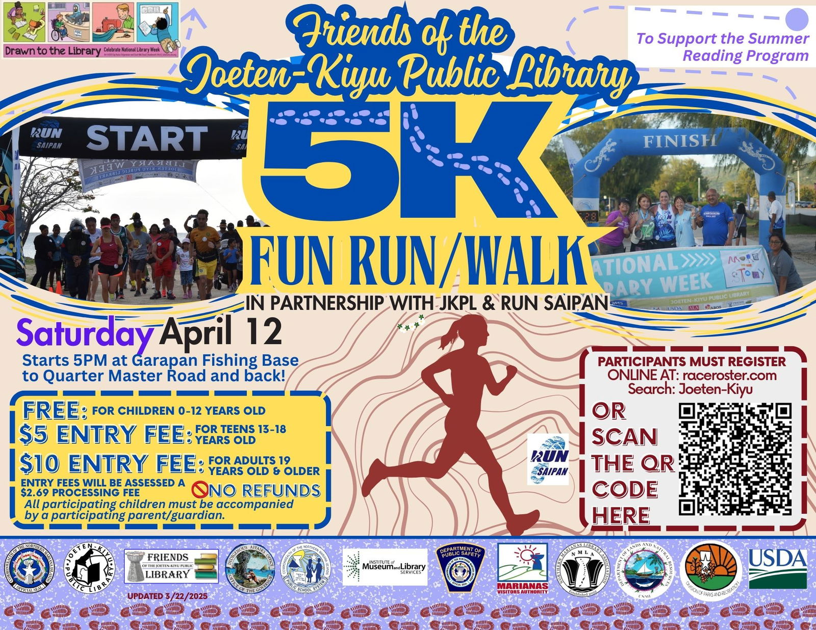 All proceeds received from the Fun Run/Walk will go to Joeten-Kiyu Public Library’s 2025 Collaborative Summer Library Program for Saipan, Tinian, and Rota, ensuring that children in our community have access to great books and educational activities.