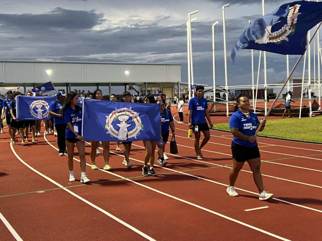 Team CNMI parades along the newly opened track field during the opening ceremony for the 10th Micronesian Games in Majuro Saturday, June 15.