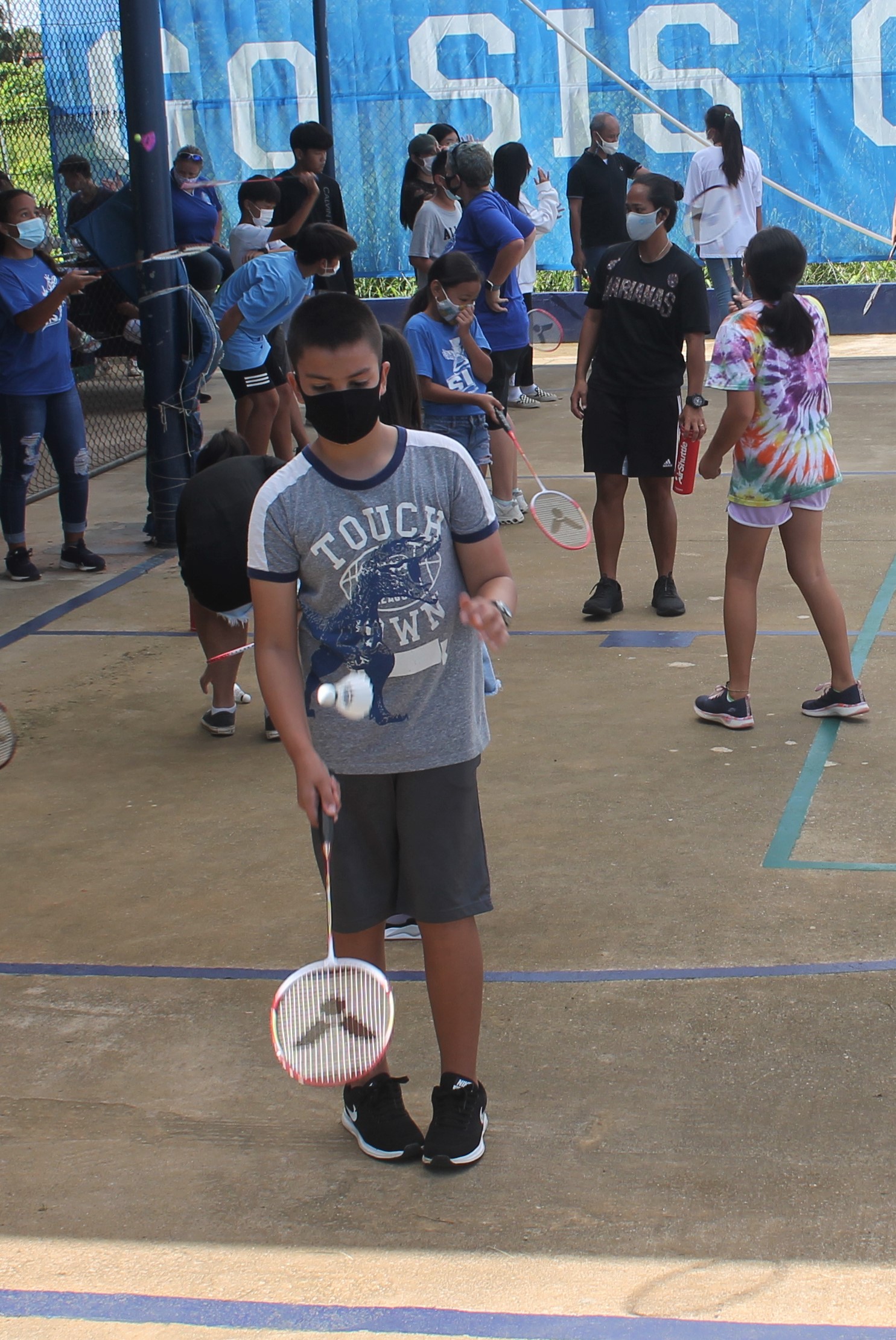 A student tries the basics of a badminton’s racket and shuttlecock. Photo by James F. Sablan Jr.