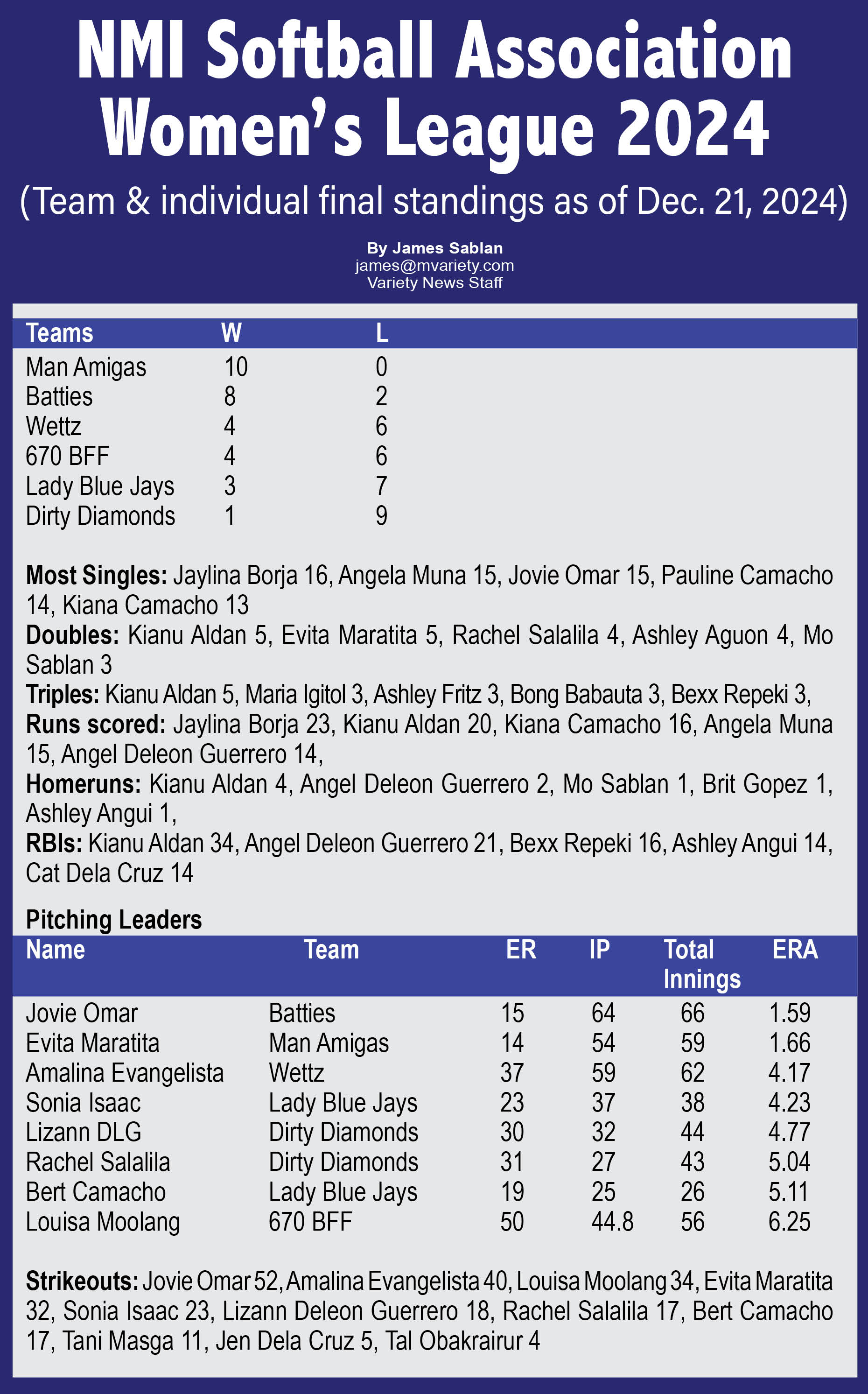 NMI Softball Association Women’s League 2024