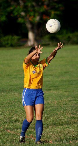 Natalie Hill throws in the ball during an Asian Football Federation game in Taiwan in 2009. Contributed photo