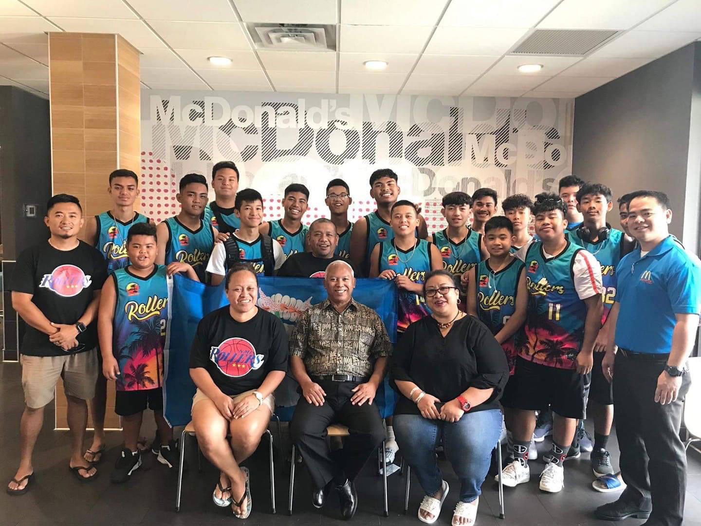 The Rollers take a photo with one of their major sponsors, Joe Ayuyu Sr., owner of McDonald’s Saipan and Guam.