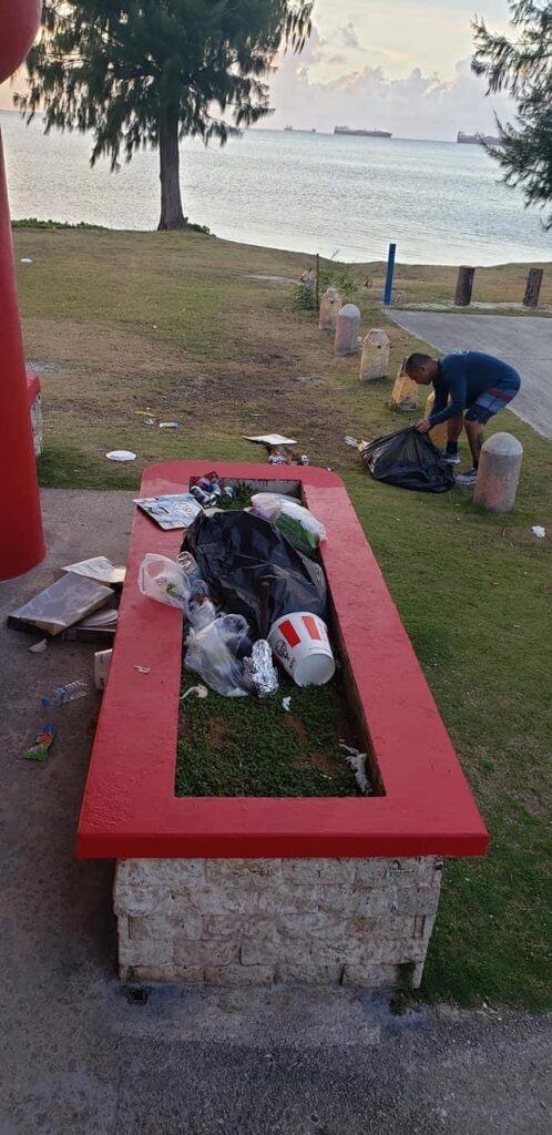 Joseph Villacrusis picks up trash in a beach area.  Contributed photo