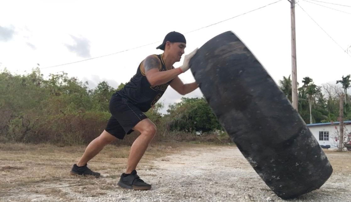 Alex Lauron performs a tire flip workout that targets his core, back, hamstring, and glutes. Photo provided by Alex Lauron