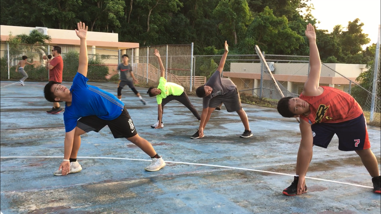 The China Town Super Tech Titans stretch before a pre-pandemic practice session at the China Town Basketball Court. Photo provided by Walt Mendez