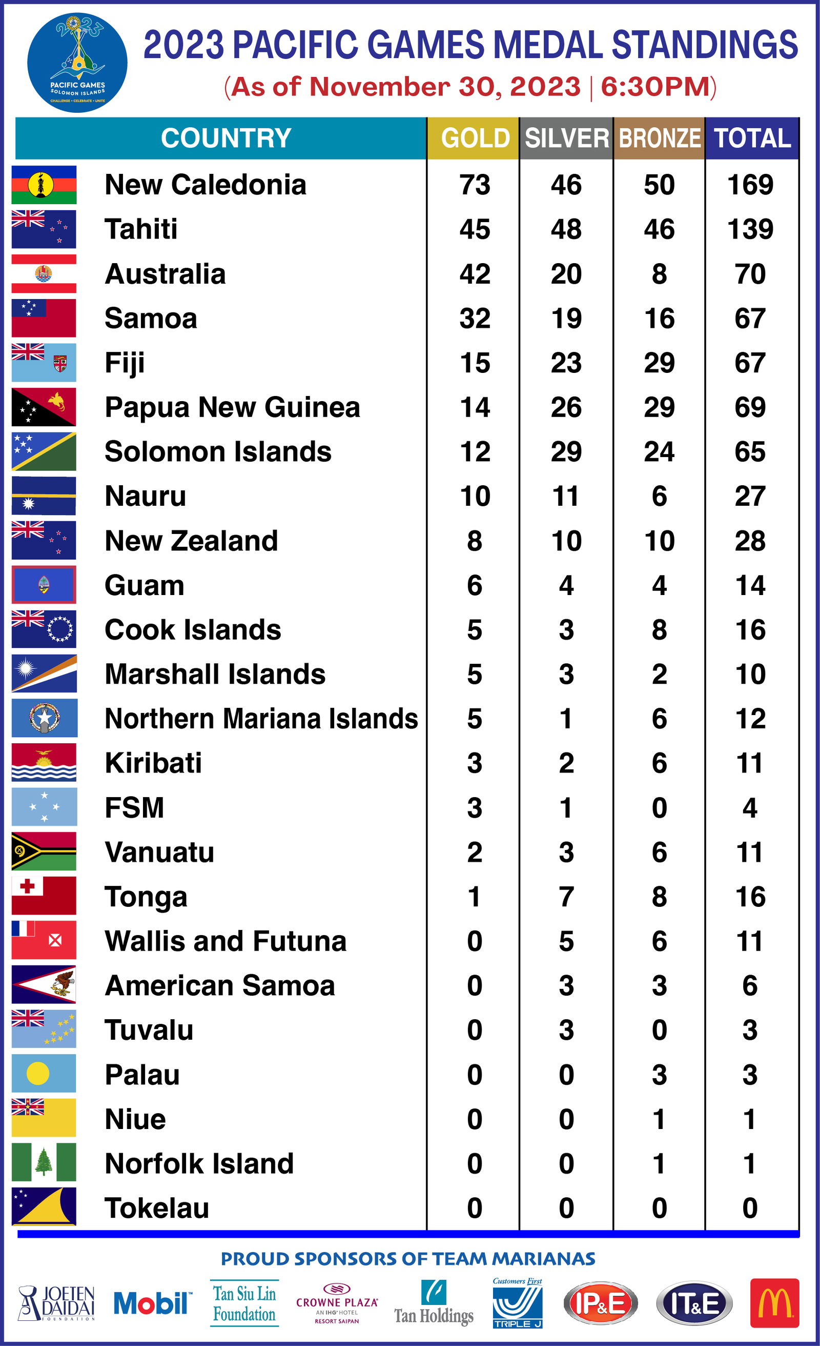 In the history of the NMI’s participation in the Pacific Games since 1975, it earned gold medals in only five editions of the games; 1987, 1999, 2011,  2019 and 2023.