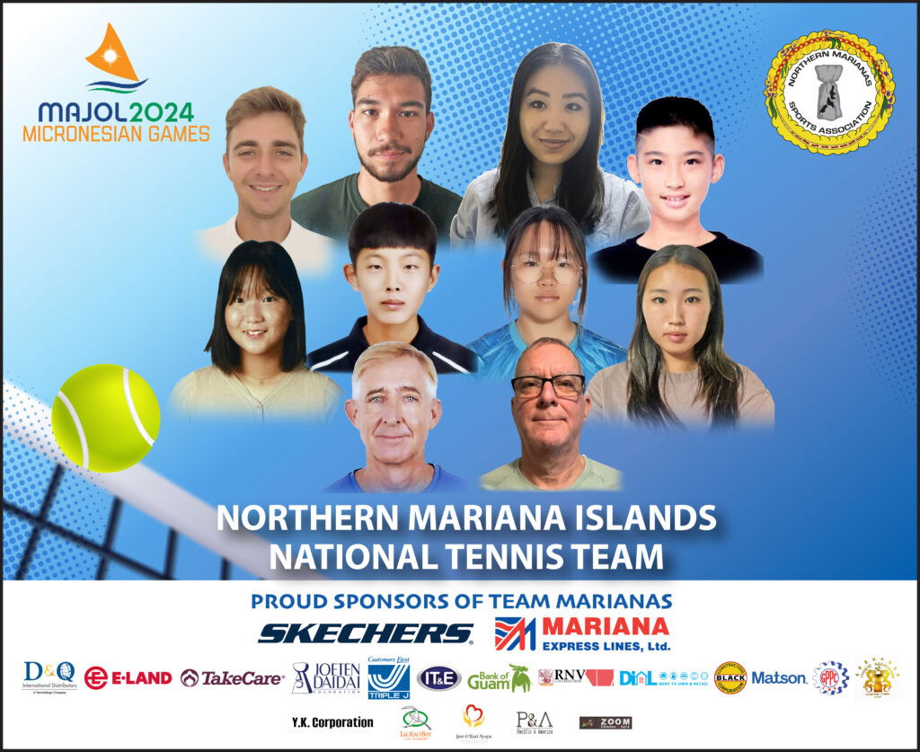 The NMI National Team Tennis is part of the 114-member delegation of Team Marianas, which is supported by the following sponsors: Mariana Express Lines Pte. Ltd, Skechers, Joeten Daidai Foundation, Triple J Motors, E-Land Group, D&Q, TakeCare Insurance, IT&E, Bank of Guam, Black Construction Corporation, Dial-Rent-To-Own, RNV Constructions, GPPC/Apex Builders, Matson, Chinese Association of Saipan, Y.K. Corporation, LaoLao Bay Golf & Resort, P&A Corporation, Jose & Ruri Ayuyu Foundation, and Zoom Café.