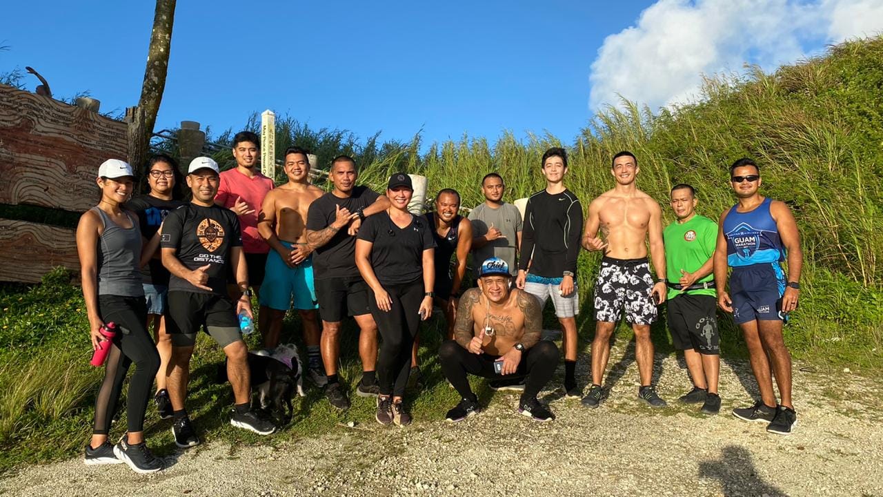 James Lee and Joe Villacrusis pose with the other participants of the 2020 Mt. Tapochao Turkey Trot Virtual Run held over the weekend. Contributed photo