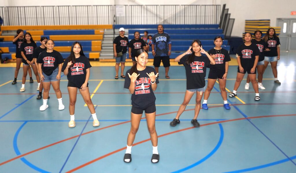 Tinian Jr./Sr. High School took part in the girls middle school division of the PSS-IT&E Interscholastic Basketball League, which concluded on Saturday. The team, which did not reach the finals, are grateful to their sponsors. “We want to express our appreciation to the Tinian Mayor’s Office, the Tinian and Aguiguan Legislative Delegation, Rep. Elias Rangamar and family, as well as PSS — especially Mrs. Liz Perzinski and Ms. Aleia H. Santos — for sponsoring our uniforms, some of our meals, and water,” said Tinian head coach John Santos. Photo shows the Tinian Jr./Sr. High School players at the Marianas High School Gym.