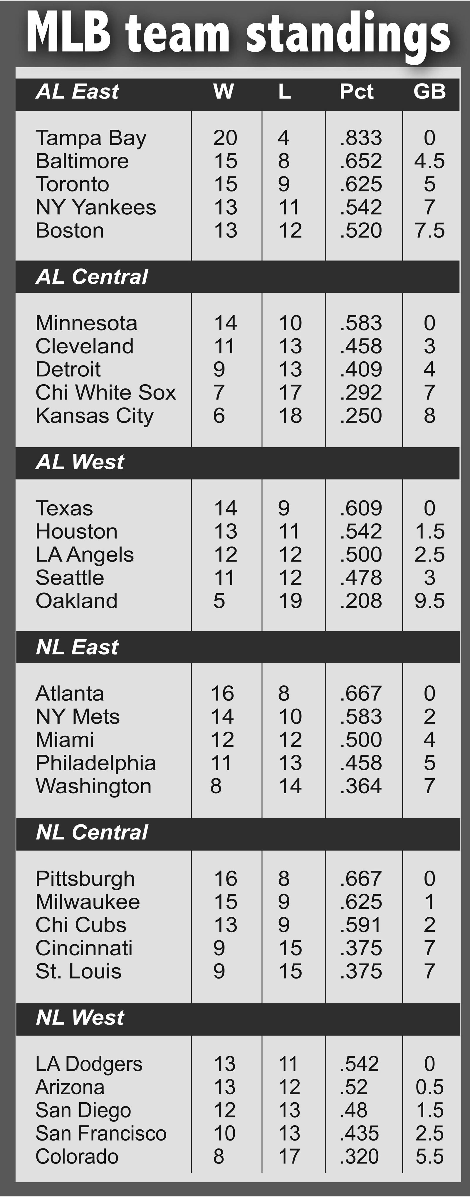 Tampa Bay’s Drew Rasmussen (3-2) cruised through four innings before Houston racked up six hits in the fifth. He surrendered five runs on nine hits, struck out five and walked two in 4 2/3 innings. Wander Franco doubled for one of Tampa Bay’s five hits as the club went homerless for the second straight game after going deep in each of the first 22 contests.