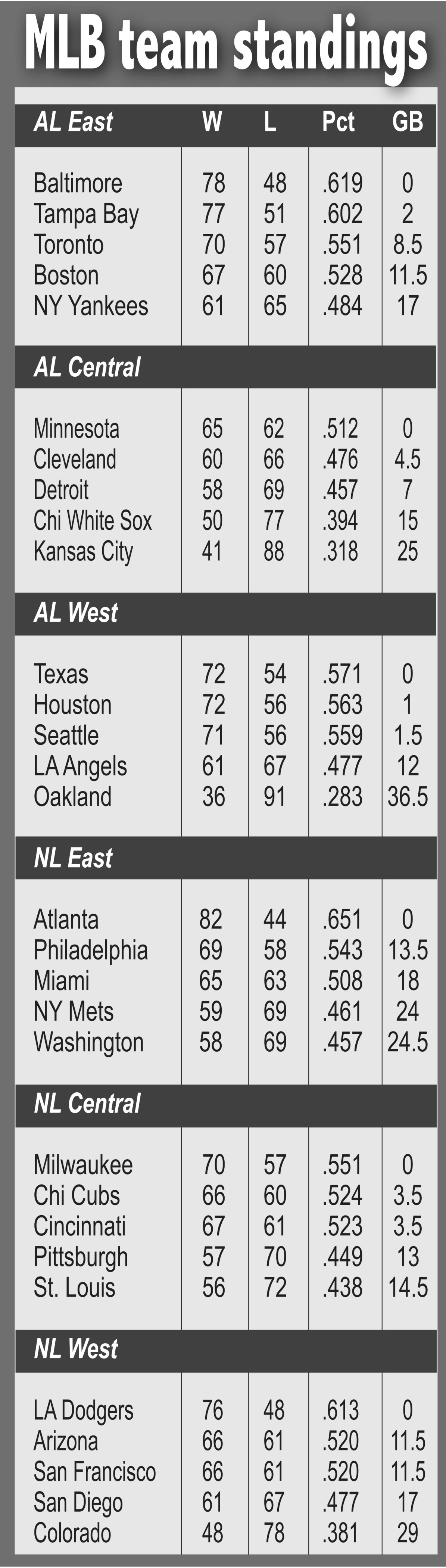 Morton (13-10) allowed only two hits — a pair of doubles by DJ Stewart — and walked one to extend his streak of scoreless innings to 18. He struck out a season-high 11 batters.