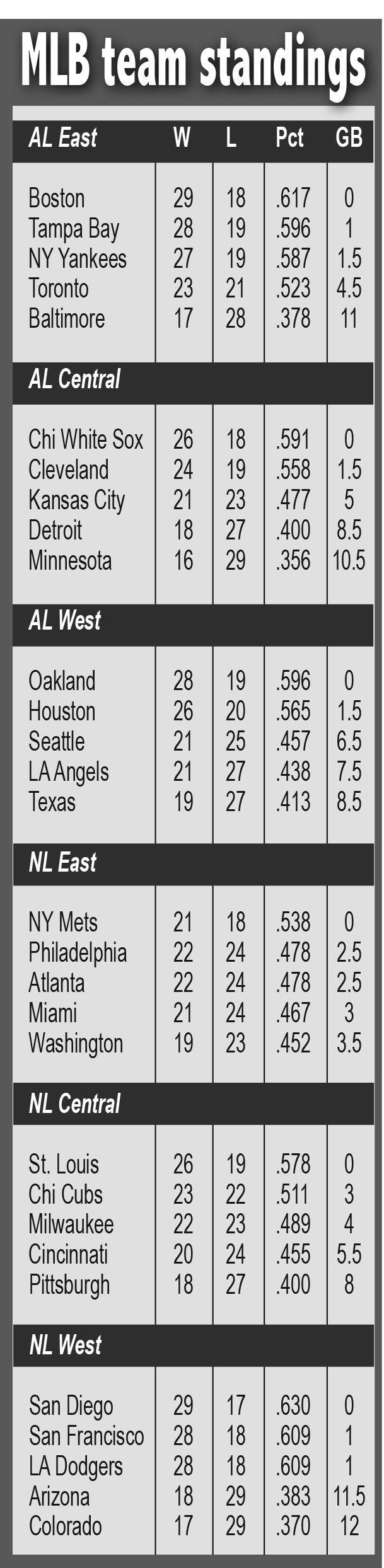 Jose Urena (2-4) earned the win despite allowing five runs on 10 hits in six innings. He struck out one and walked none. Michael Fulmer pitched a 1-2-3 ninth inning for his fourth save in as many chances.