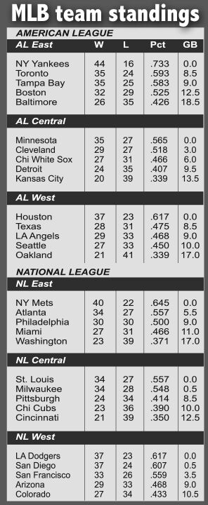 The Yankees won for the 11th time in 12 games and reached 60 games with at least 44 wins for the fifth time in team history. New York’s 60-game start is the best since the 2001 Seattle Mariners began 47-13 and marked the sixth time since 1940 a team won at least 44 of the first 60 games.
