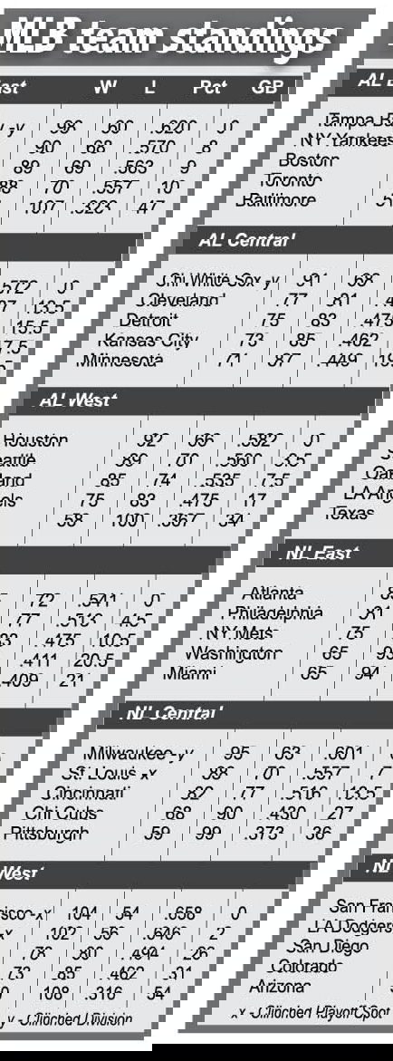 The Rays set a single-season franchise record with their 98th victory while handing the Astros their fifth loss in six games. Houston would have clinched the AL West with a victory. Rasmussen (4-1) struck out two and did not issue a walk.