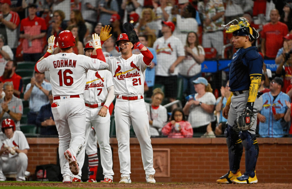 (Reuters) — Nolan Gorman and Nolan Arenado hit three-run homers and combined for nine RBIs to power the St. Louis Cardinals past the visiting Milwaukee Brewers 18-1 on Monday.