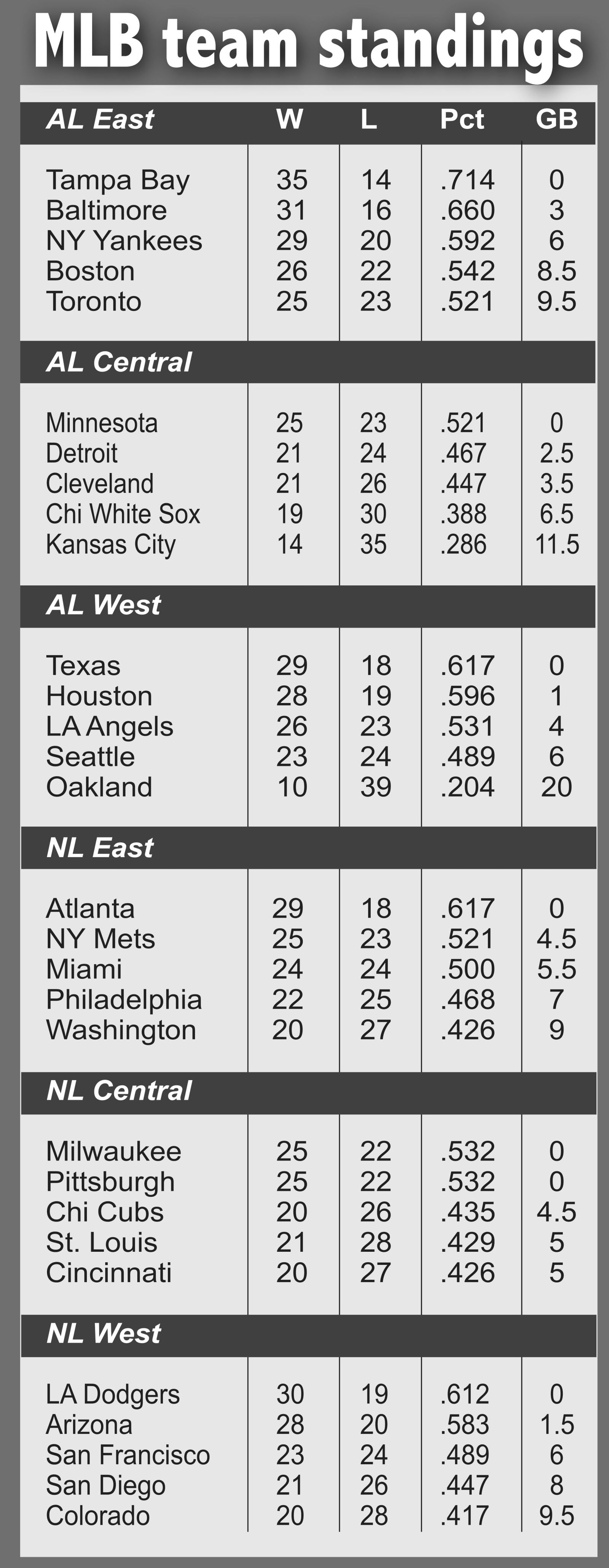 The unexpected pitchers’ duel featured Gaddis and the White Sox’s Jesse Scholtens (0-2), who allowed one run on two hits over five innings after opener Jimmy Lambert pitched a scoreless first. Scholtens was recalled from Triple-A Charlotte to replace expected starter Mike Clevinger, who landed on the IL.