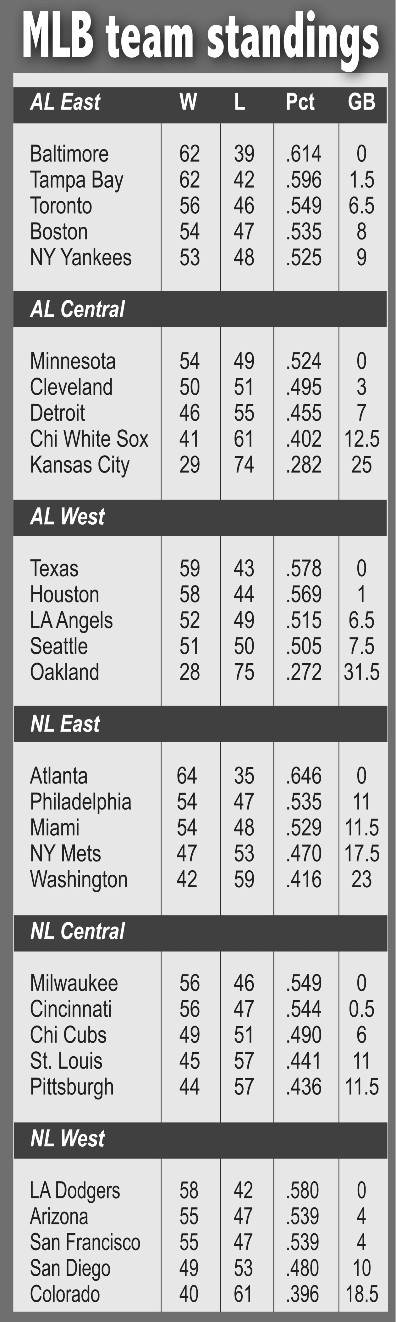 Atlanta starter Charlie Morton (10-8) gave up four runs on six hits in 3 2/3 innings. The damage could have been worse if the Braves didn’t turn an 8-3-5 triple play in the third. It was the first triple play in the major leagues this season.