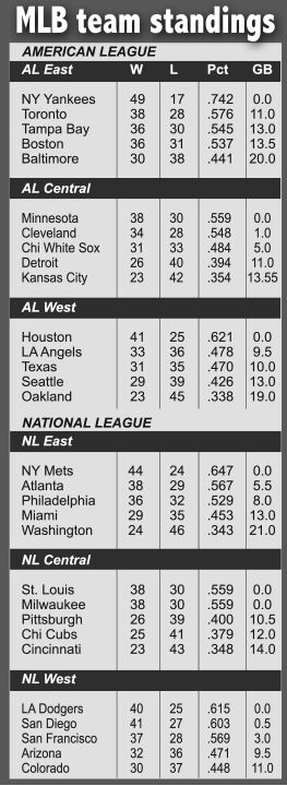 The losing pitcher was Kyle Hendricks (2-6), who has lost three of his last six starts and has not won since May 9. The veteran pitched 4 1/3 innings and allowed six runs on eight hits, one walk and six strikeouts. Chicago’s Adrian Sampson followed by pitching the final 4 2/3 innings and allowing no runs on one hit with five strikeouts and no walks.