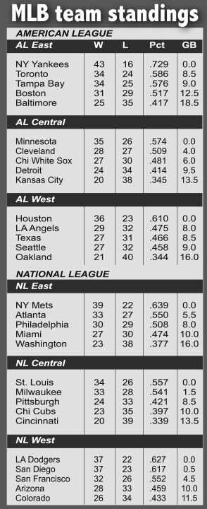 The Yankees set a season high with six homers, raising their MLB-leading total to 94. New York also won for the 10th time in 11 games and improved to 43-16.