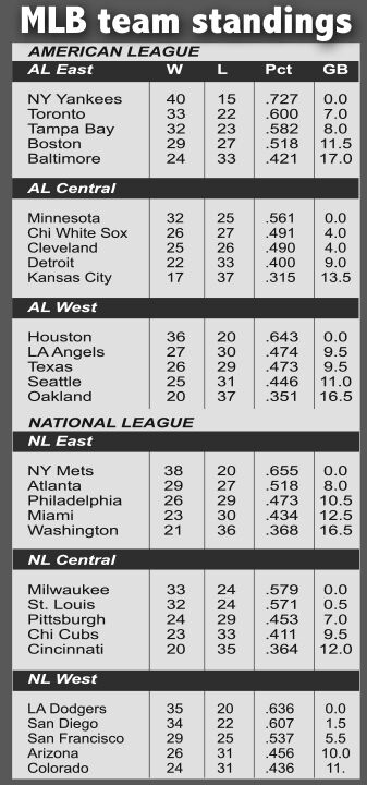 Verlander (7-2) allowed one run on six hits and two walks while throwing a season-high 108 pitches. Kyle Tucker and Jeremy Pena hit RBI singles for the Astros, and Yordan Alvarez added a two-run homer. Ryan Pressly pitched a perfect ninth inning, fanning two, for his 11th save.