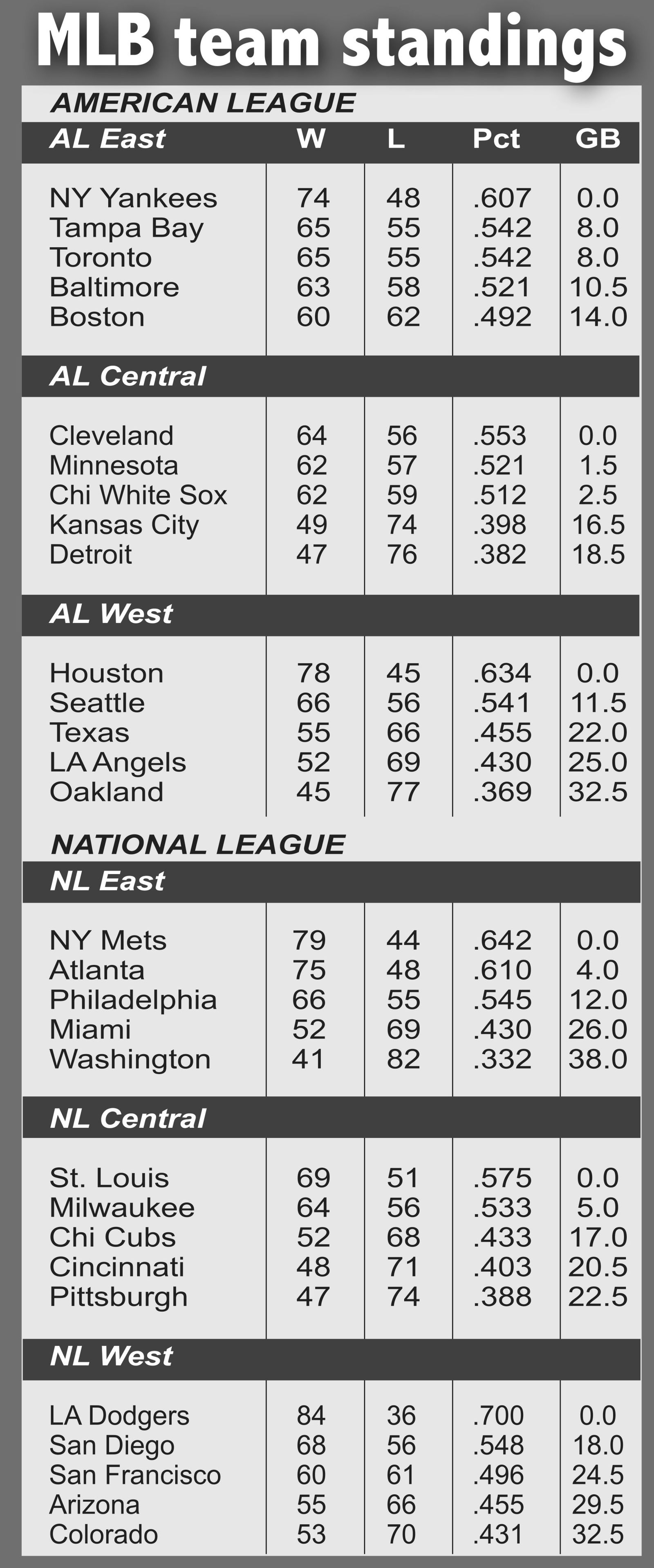 Canha had three hits and drove in five runs for the Mets, who won three of four in the series. It was Canha’s third career multi-homer game. Brandon Nimmo added a solo homer in the ninth. Trevor May (2-0) earned the win in relief. Edwin Diaz allowed one run in the ninth but still earned his 28th save in 31 chances.