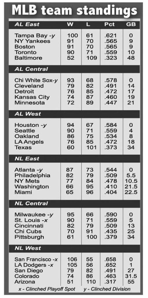 Justin Turner and AJ Pollock each slugged home runs, matching their career highs. The victory moved the Dodgers one game behind the San Francisco Giants in their bid to win a ninth consecutive division title. Urias (20-3) gave up one run on one hit over 6 1/3 innings with seven strikeouts to become the National League’s first 20-game winner since teammate Max Scherzer with the Washington Nationals in 2016.