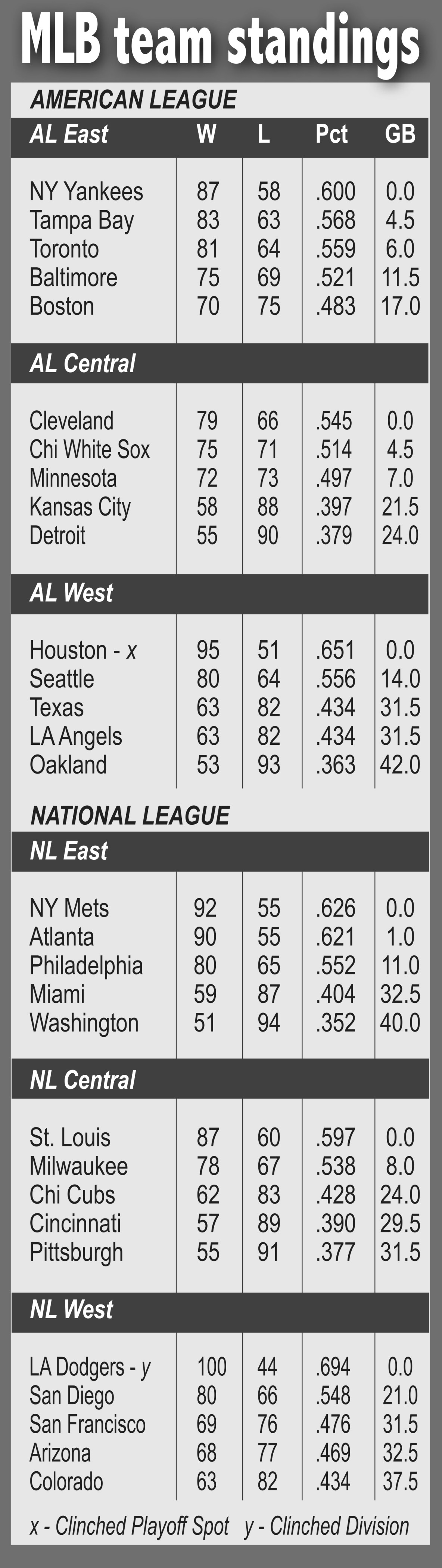 Daniel Vogelbach drove in three runs and Francisco Lindor hit a two-run homer as the Mets (90-55) snapped a three-game losing streak — tied for their longest of the season — and increased their lead to one game over the idle Atlanta Braves in the National League East.