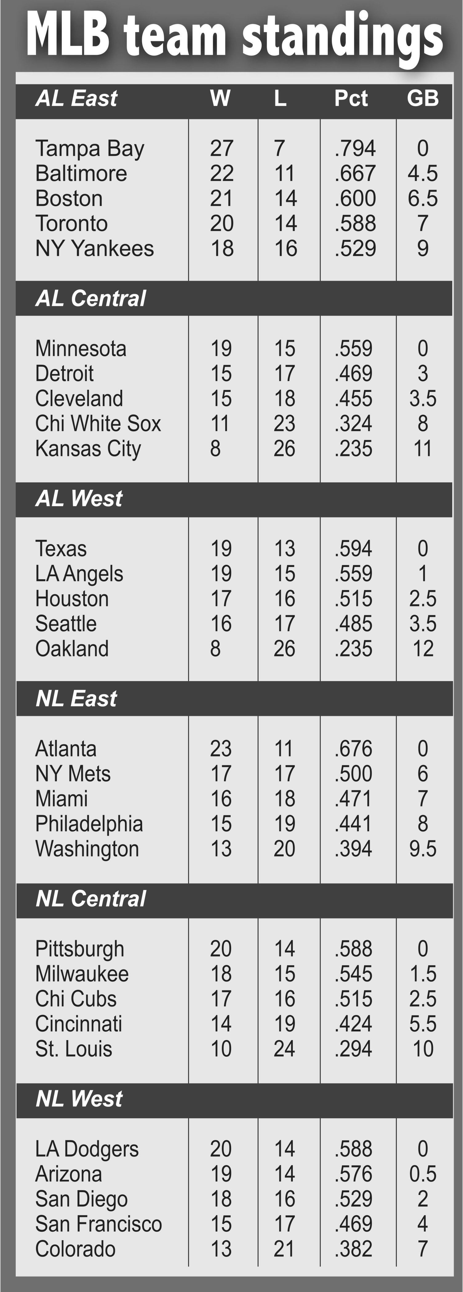 Taylor’s sixth homer of the season was the only hit allowed by Snell over six innings. May held the Padres scoreless on three hits and a walk with six strikeouts over six innings to earn the win and improve to 4-1 on the season. No Padres reached second against May. Snell (1-5) took the loss despite allowing the one hit and three walks with six strikeouts in six innings.