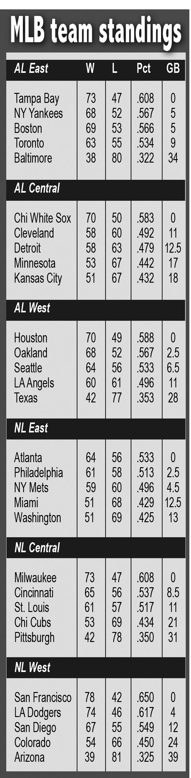 Framber Valdez (8-4) took the loss after giving up three runs on nine hits in 6 2/3 innings with one walk and five strikeouts. He allowed at least one hit in each inning and worked around most of the trouble.