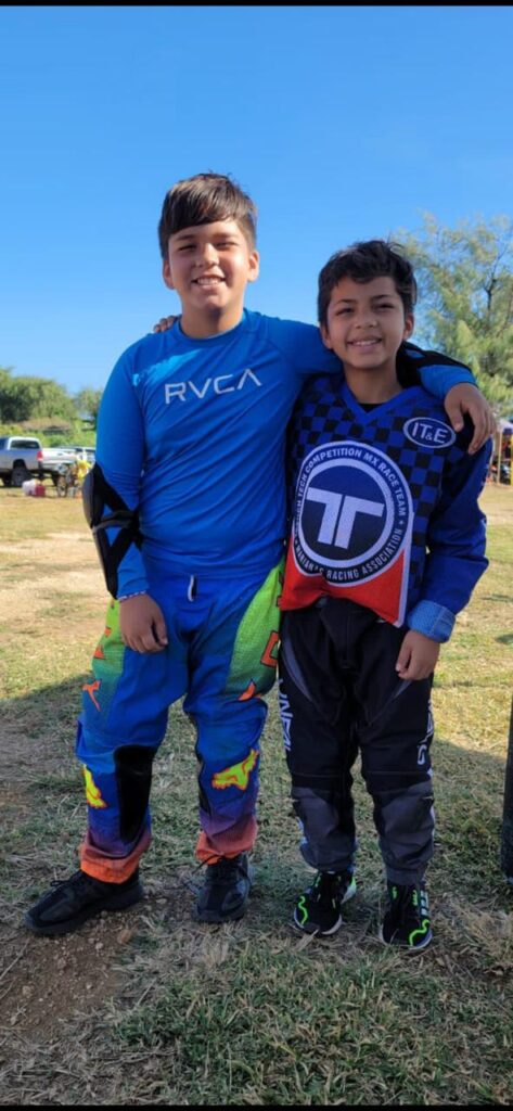 Brothers Stanley Jr. and Conan Iakopo pose for a photo before competing in the Monster Energy Points Race Series at Cow Town Raceway Park.