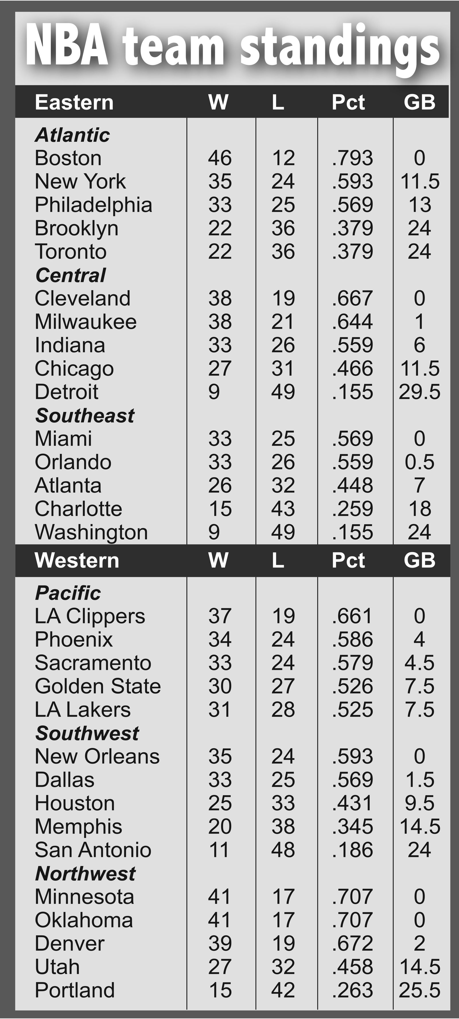 Philadelphia trailed by two with 8:50 to play, but Boston scored the next 16 points to take a 107-89 lead with four minutes remaining. Boston had a 56-28 edge in rebounds.