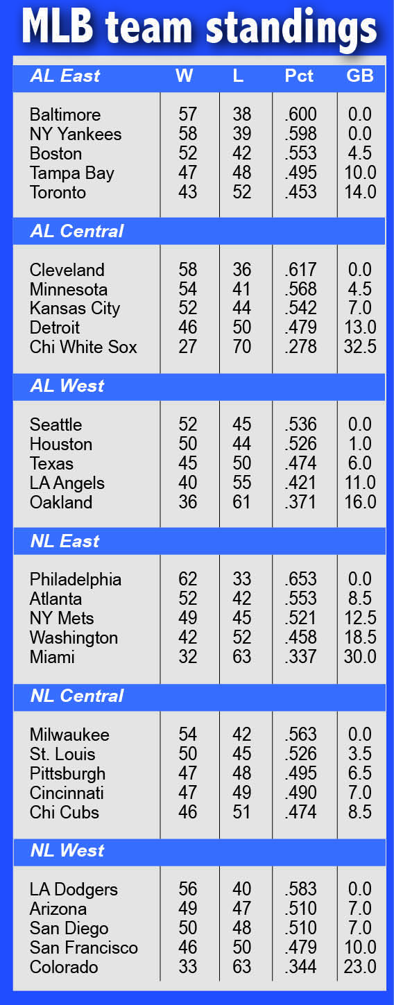 Jose Berrios (8-7) allowed five runs and seven hits in four innings for the Blue Jays. He walked four and struck out none.