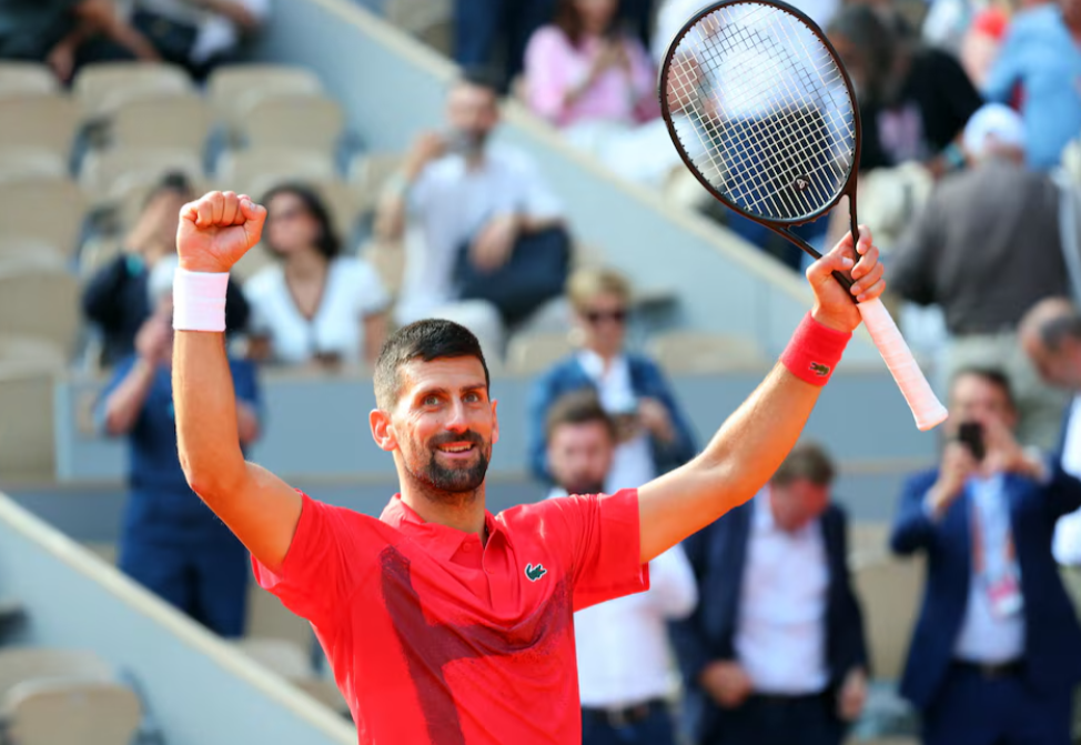 Serbia’s Novak Djokovic celebrates winning his fourth-round French Open match against Britain’s Cameron Norrie at Roland Garros in Paris, France on June 2, 2025.