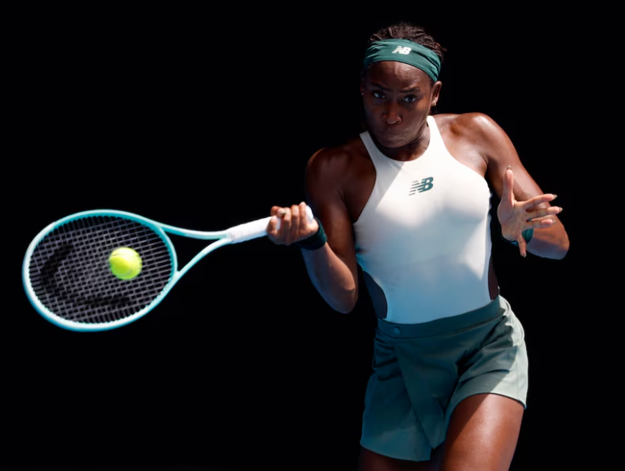 Coco Gauff of the U.S. in action during her fourth-round match against Switzerland’s Belinda Bencic in the Australian Open at Melbourne Park, Melbourne, Australia, Jan. 19, 2025.