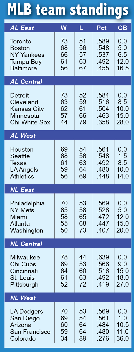 The win was Milwaukee’s 13th straight as the Brewers matched their franchise-best run set in 1987. The stunning comeback was Milwaukee’s 28th win in 32 games, increasing the best record in the majors to 77-44. Milwaukee has outscored its opponents 36-13 in the past three games, scoring in double figures each time.