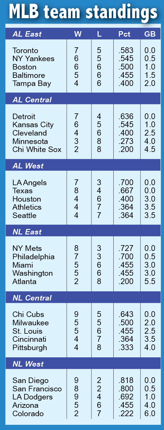 Yankees starter Carlos Rodon gave up six runs, five earned, on four hits with eight strikeouts in six-plus innings. Aaron Judge had an RBI single for New York, which managed just one extra-base hit in the chilly conditions.