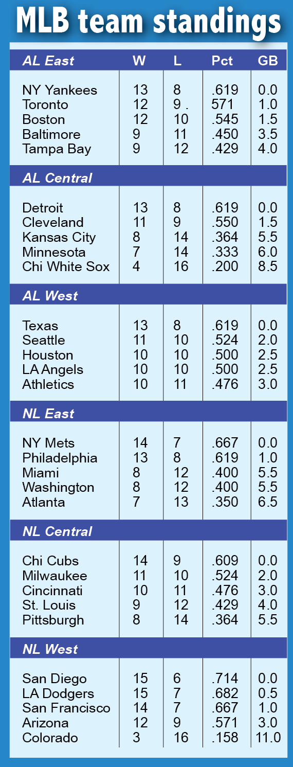 Riley Greene had two hits, scored two runs and knocked in another for the Tigers, while Andy Ibanez hit a solo homer. Tomas Nido added three hits and an RBI. Jackson Jobe (2-0) gave up one run on five hits in five innings. Tommy Kahnle got the last two outs with the bases loaded for his fourth save.