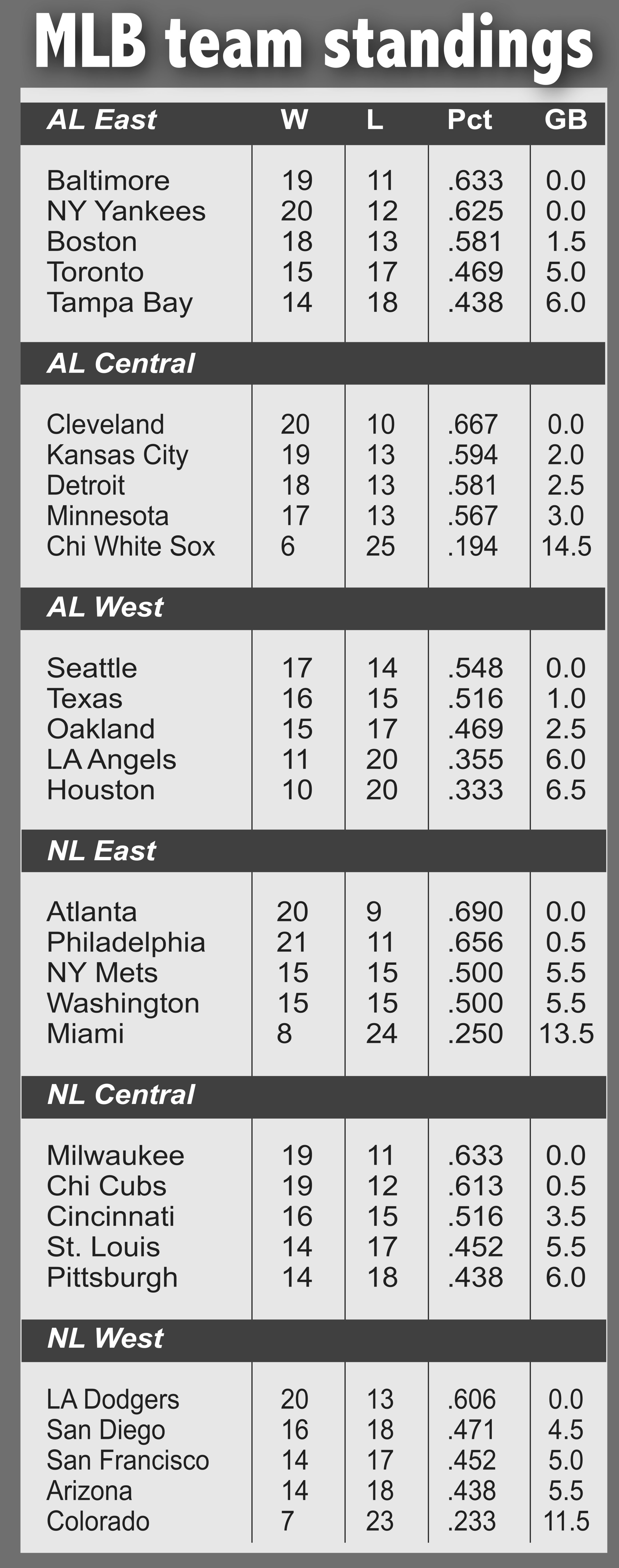 Riley and Ronald Acuna Jr. each had two hits for the Braves, who snapped their first two-game losing streak of the season. Sale (4-1) gave up six hits, didn’t walk a batter and struck out nine.