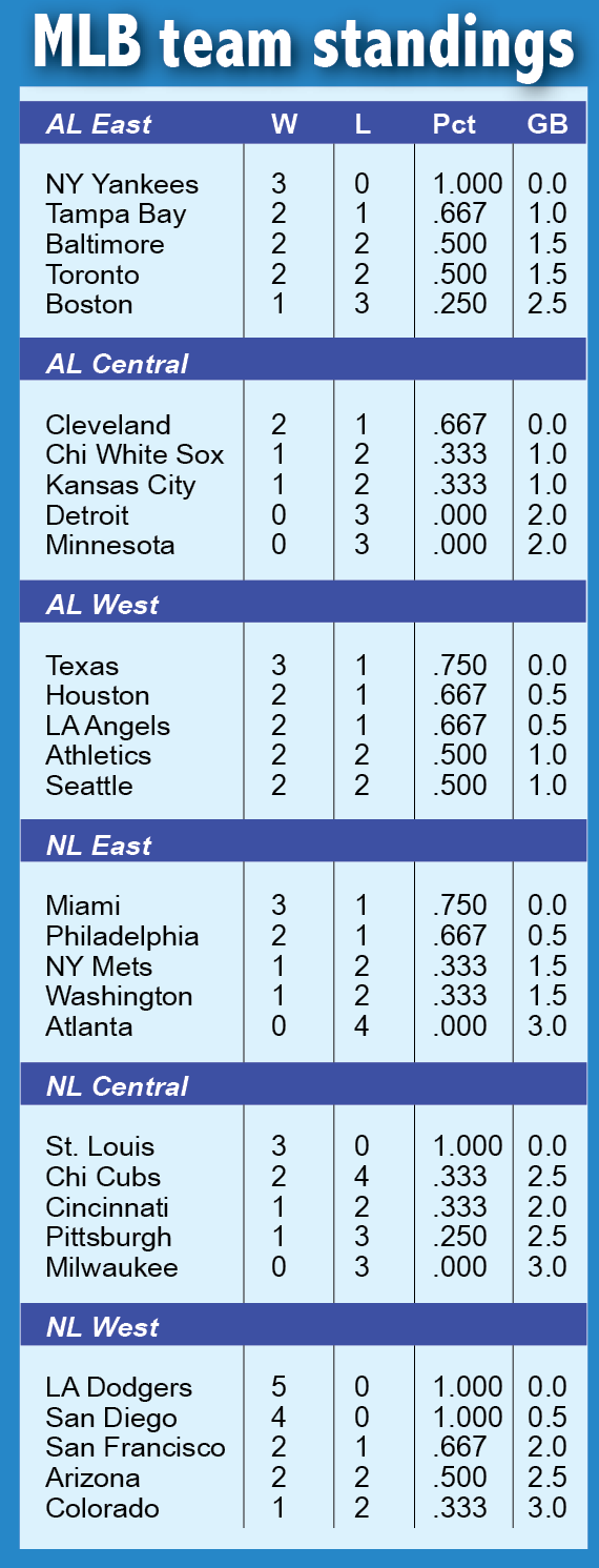 The Rays’ Brandon Lowe hit his first home run and collected two RBIs, and Jonny DeLuca went 3-for-4 with two stolen bases. Starter Taj Bradley (1-0) gave up two runs on five hits while striking out seven over six strong innings. Pete Fairbanks earned his first save.