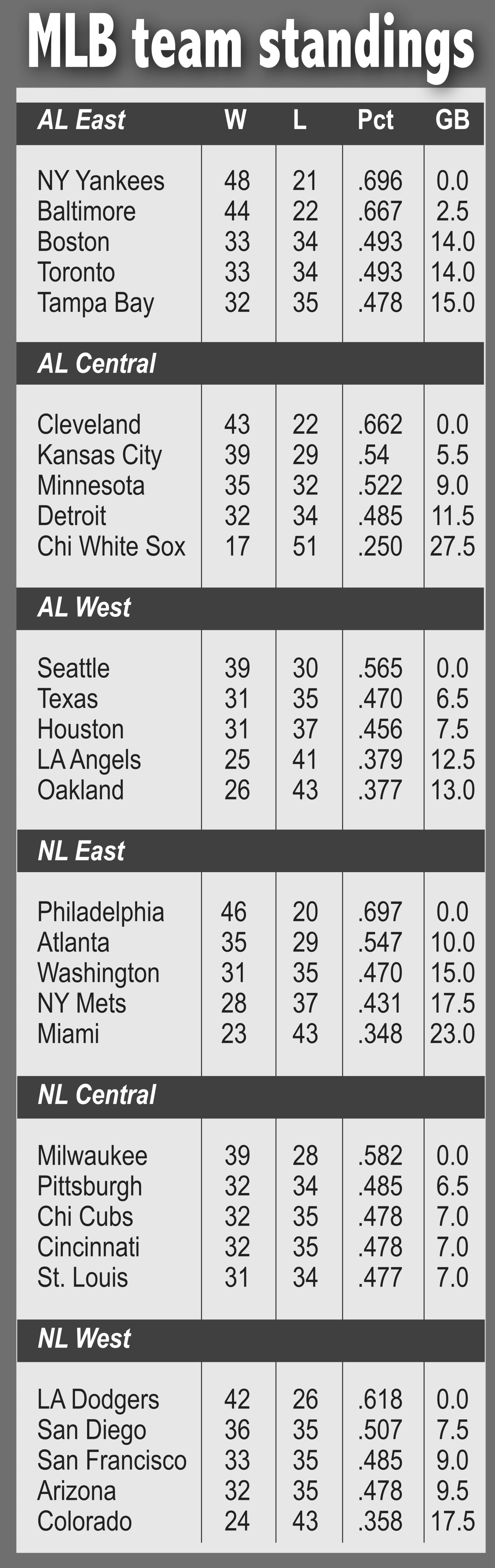 New York starter Marcus Stroman (6-2) threw 5 2/3 shutout innings, allowing four hits. Royals starter Brady Singer (4-3) was tagged for seven runs, six earned, on seven hits in 5 2/3 innings.