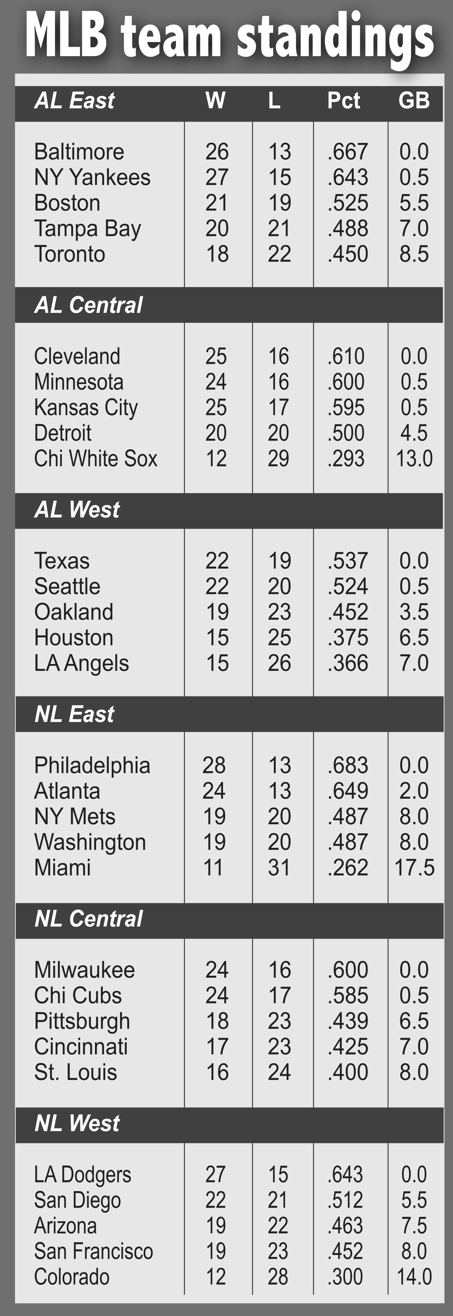 Verlander (2-1), who retired the first 14 batters he faced, allowed two hits and recorded eight strikeouts. Kyle Tucker hit his major-league-leading 13th homer, a two-run shot. Jake Meyers had three hits and drove in three runs, and Mauricio Dubon delivered four hits, scored a run and drove in another.