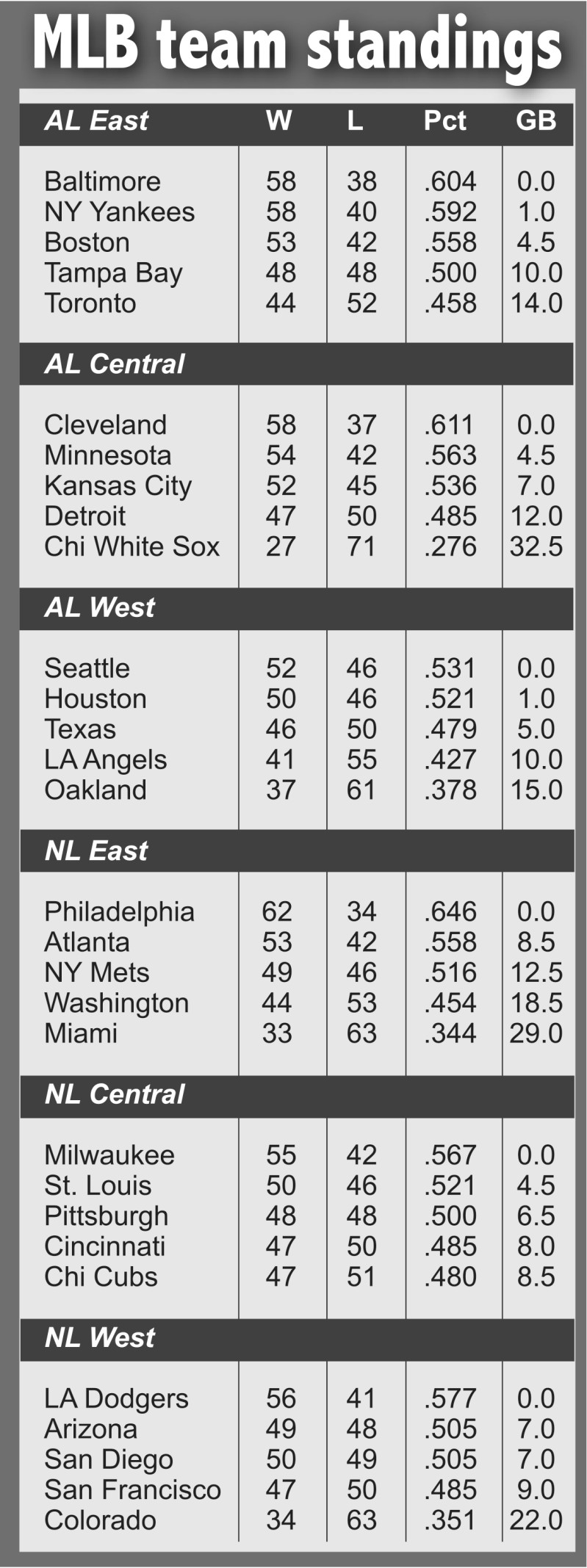 Sale (13-3) went five innings, allowing four hits and a run with two walks and four strikeouts. Four relievers got the final 12 outs, with closer Raisel Iglesias pitching the ninth inning to bag his 22nd save in 24 chances as Atlanta won for the sixth time in its last nine games.