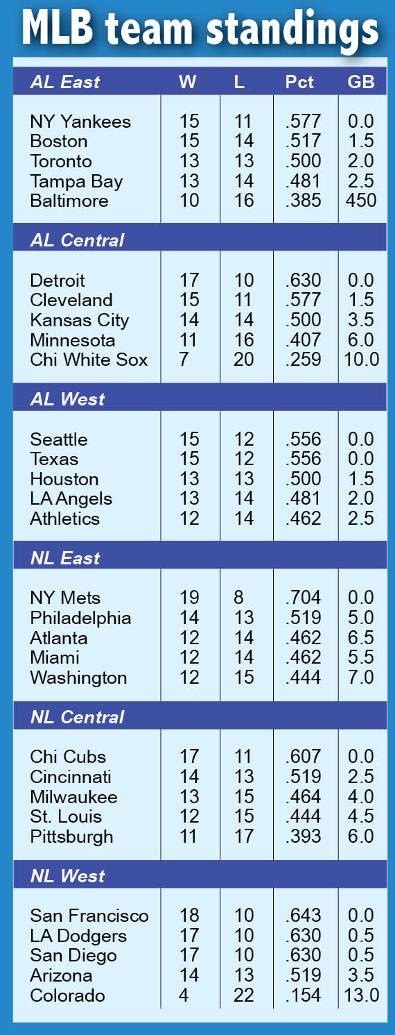 Yamamoto (3-2) allowed three runs (one earned) on five hits over five innings. Andy Pages hit a pair of doubles for Los Angeles, which lost for the fourth time in its past five games. The Dodgers are 8-10 since opening with an 8-0 record.