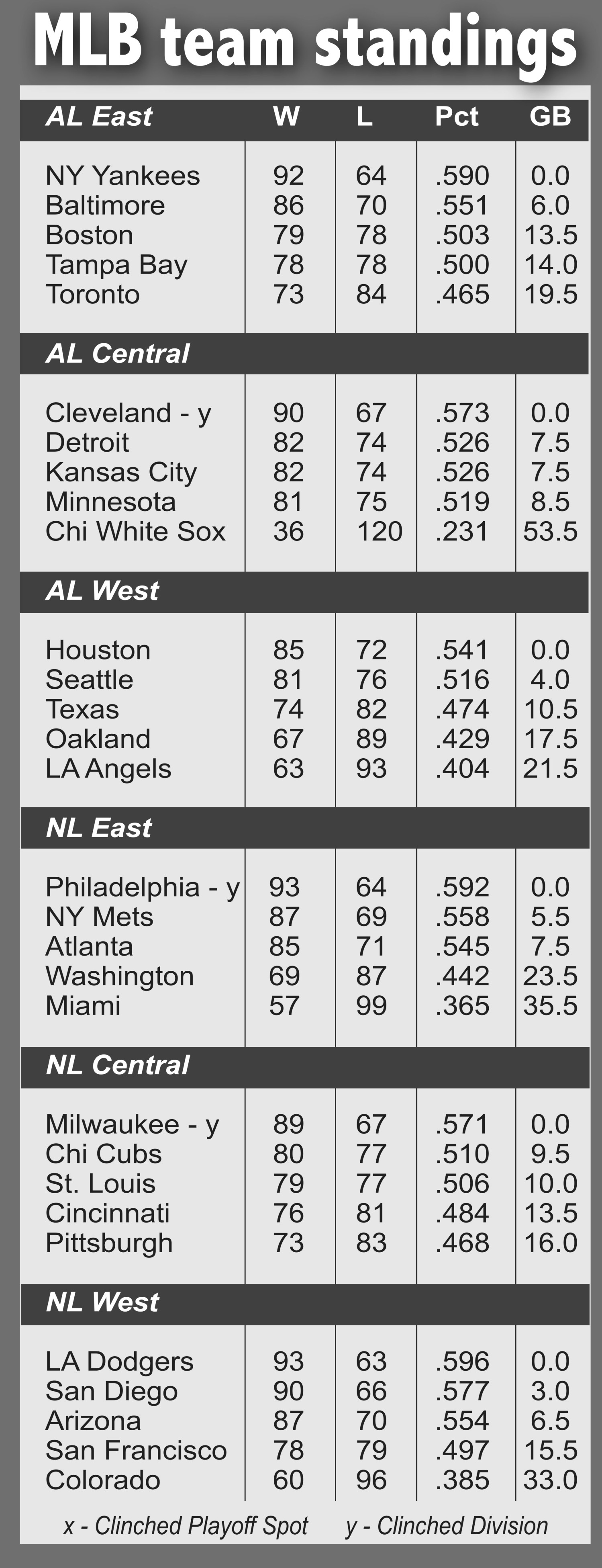 The Phillies entered the day with a magic number of one to clinch the division — a bit of a disappointment after a 2-5 road trip against the Milwaukee Brewers and New York Mets.