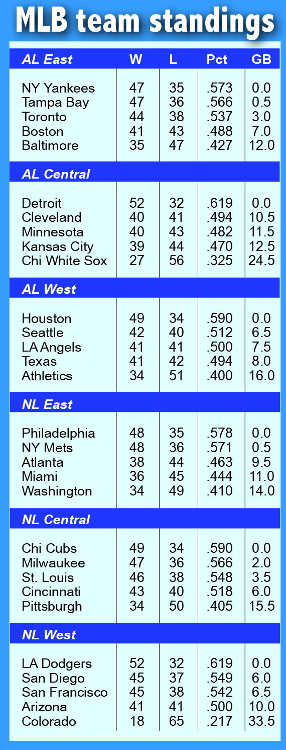 Juan Soto poked his 20th homer to account for the Mets’ run. David Peterson (5-4) surrendered five runs, seven hits and three walks while striking out five during his 4 2/3 innings. Brett Baty contributed two doubles.