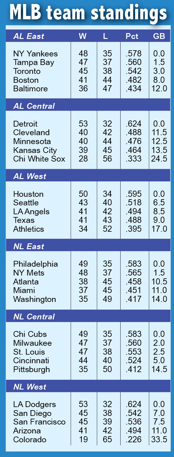 The Yankees won for the sixth time in their past 16 games and scored their most runs since a 13-1 win May 24 at Colorado. Judge hit a pair of two-run homers after going hitless in his first seven at-bats of the series. Cody Bellinger added a three-run homer as the Yankees scored 10-plus runs for the first time since their 10-2 win over the host Kansas City Royals on June 10.